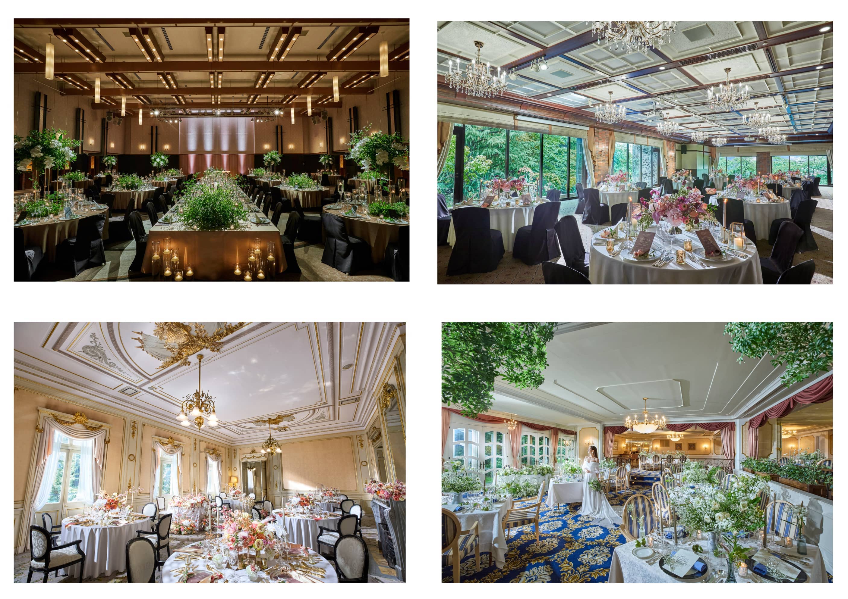 ロイヤル、クラシカルからスタイリッシュ、ナチュラルまで。人数やスタイルに合わせて多彩な会場をご用意しています。
